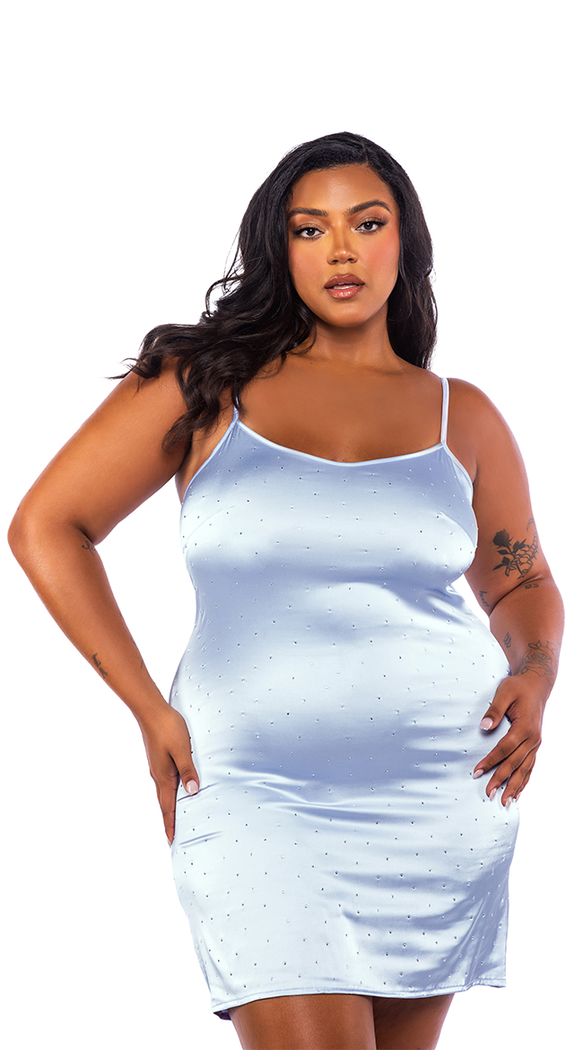 • Satin with all-over front panel rhinestone detail